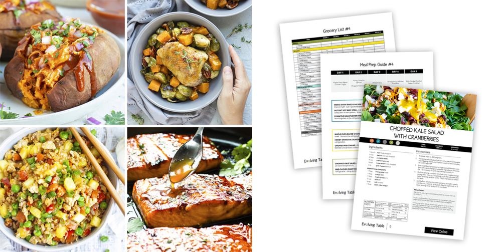 Save time, money, and hassle with this 1-Week Meal Plan + Meal Prep that is completely customizable! A printable PDF that comes with 6 healthy, family-friendly dinner recipes (all can be made GF + DF), nutritional information, an organized grocery list, and a meal-prep guide. The recipes include: